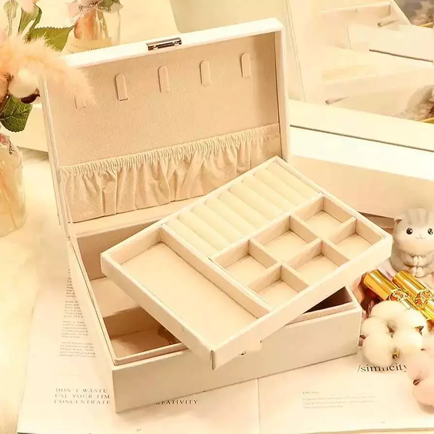 Descubrí la perfecta combinación entre estilo y orden con nuestro alhajero con compartimento extraíble. Confeccionado en cuero PU de alta calidad y un interior en terciopelo suave, protege tus objetos más valiosos con delicadeza y sofisticación.