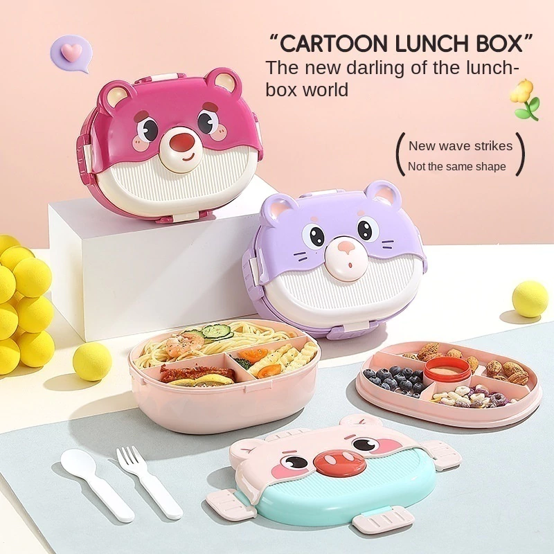 Colores y figuras que encantan Con formas de animales como osos y cerdos en tonos brillantes como rosa, morado y azul claro, esta lonchera es perfecta para captar la atención y alegrar cualquier almuerzo. Su diseño compacta y reutilizable la hace ideal para llevar a cualquier lugar.