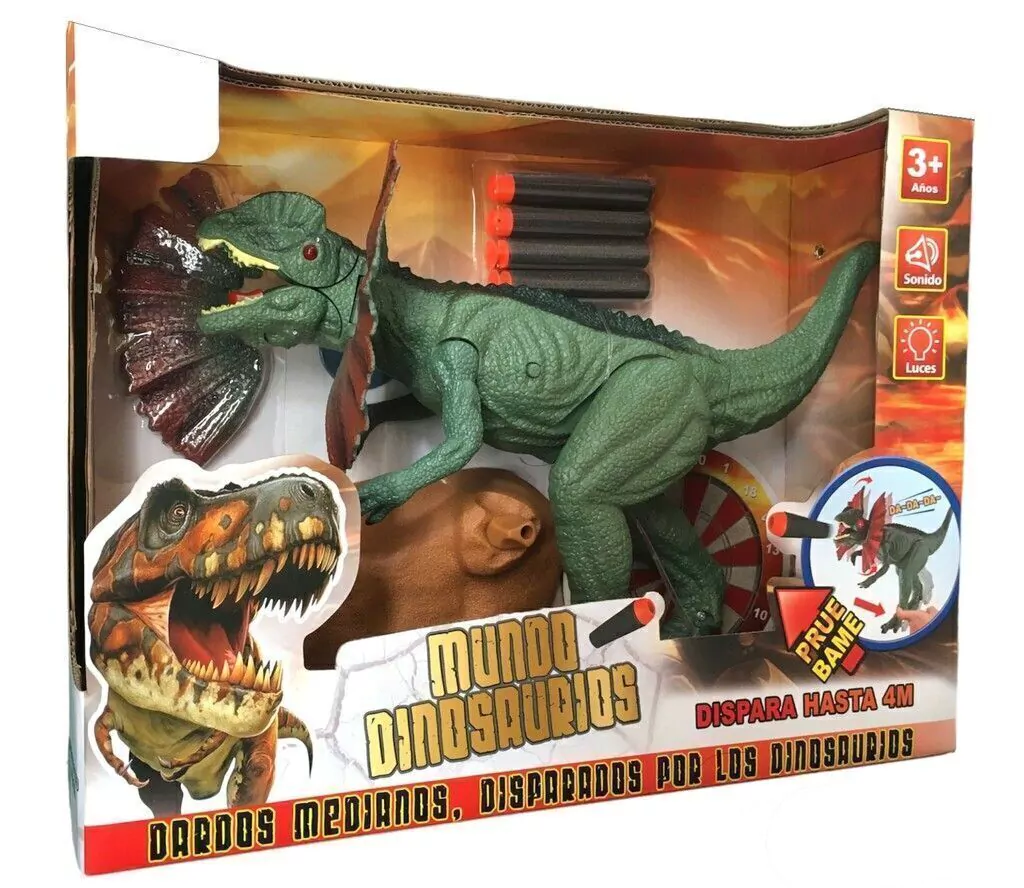 Incluye 4 dardos de espuma con ventosa. Simplemente carga un dardo en la boca, tira de la cola hacia atrás para cargar, y tira de la pierna para disparar